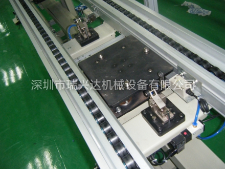 6、調(diào)頭 根據(jù)桶身的高度調(diào)節(jié)調(diào)頭中心,根據(jù)桶身的大小調(diào)節(jié)磁塊的寬 度,桶身通過輸送帶傳送到調(diào)頭工位磁塊吸住,感應(yīng)后旋轉(zhuǎn)180度,自動退磁輸出。